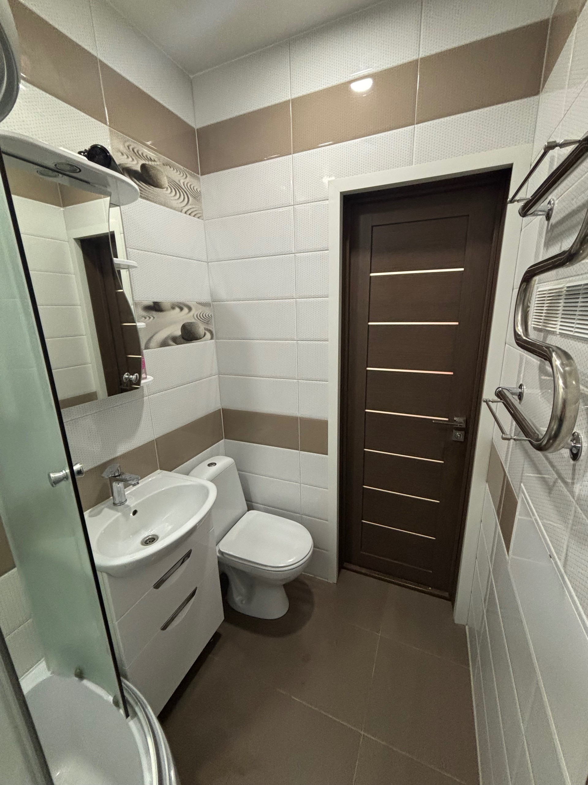 Душевая комната и средства личной гигиены (гель для душа, шампунь, мыло).